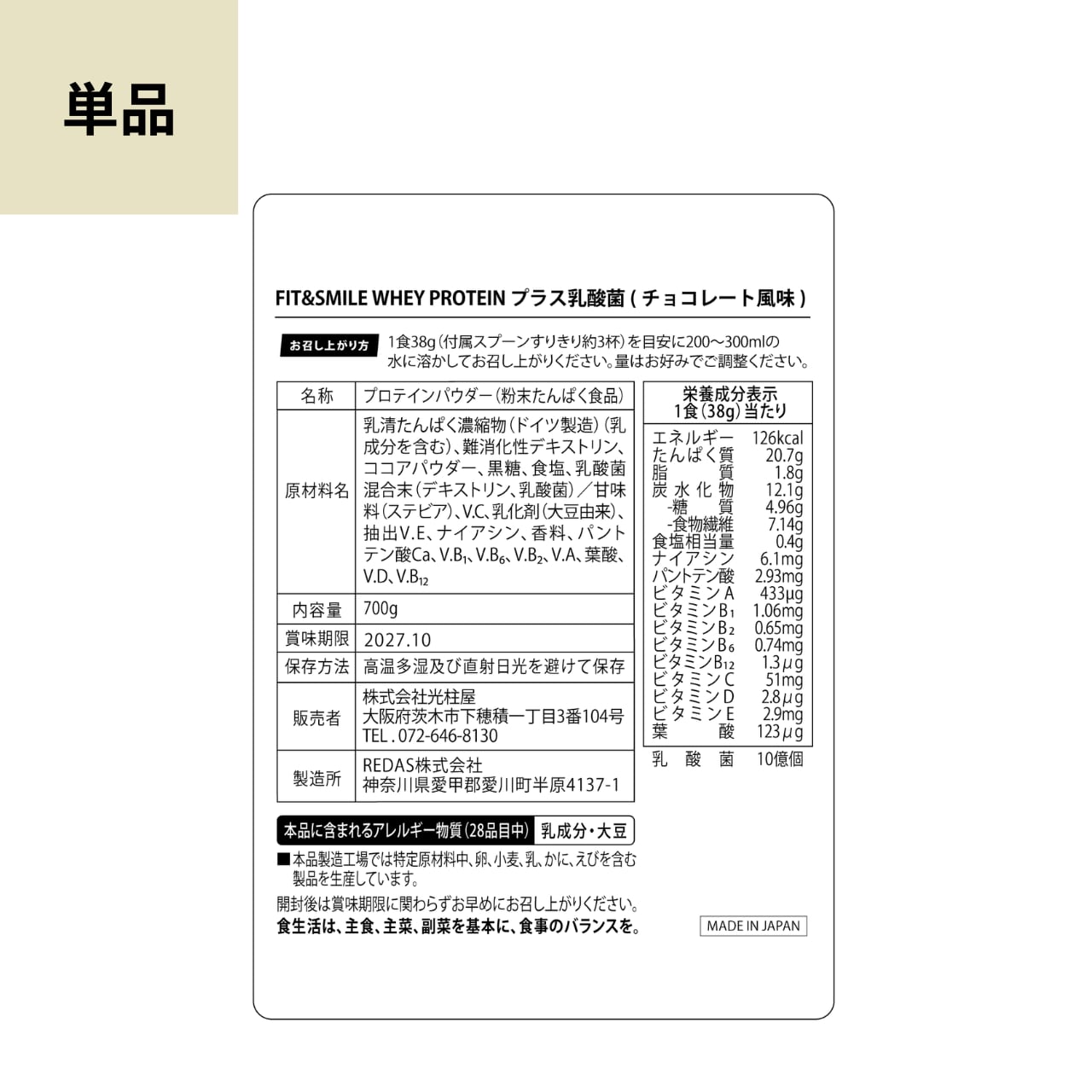 【単品】FIT&SMILE WHEY PROTEIN プラス乳酸菌 チョコレート風味